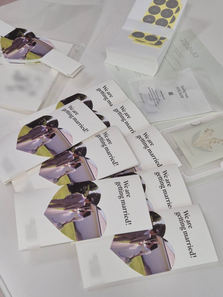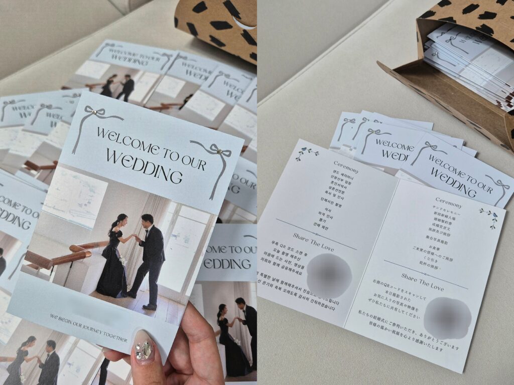結婚式のステイショナリーはウェディングの業者にオプションで一緒に頼むと、16万ウォンかかると言われて…無いのは寂しいなと思ってCanvaで作って印刷までしました👌🏻