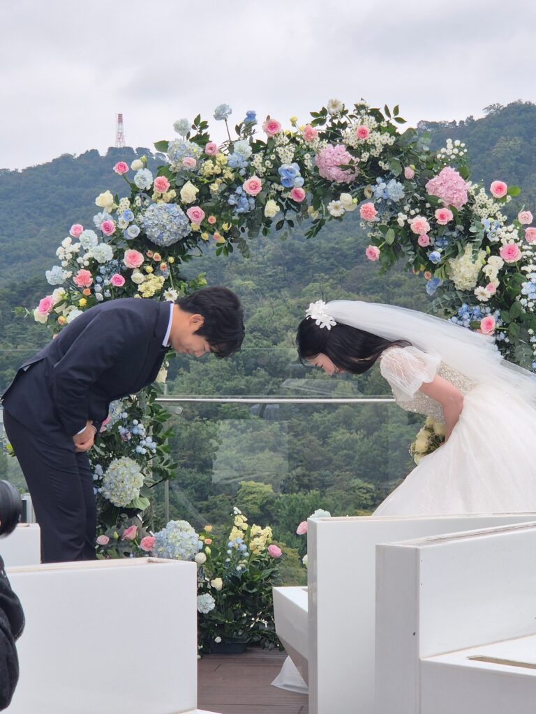 入場の後には、新郎と新婦がそれぞれ向かい合ってお辞儀をする「맞절」を行いました。