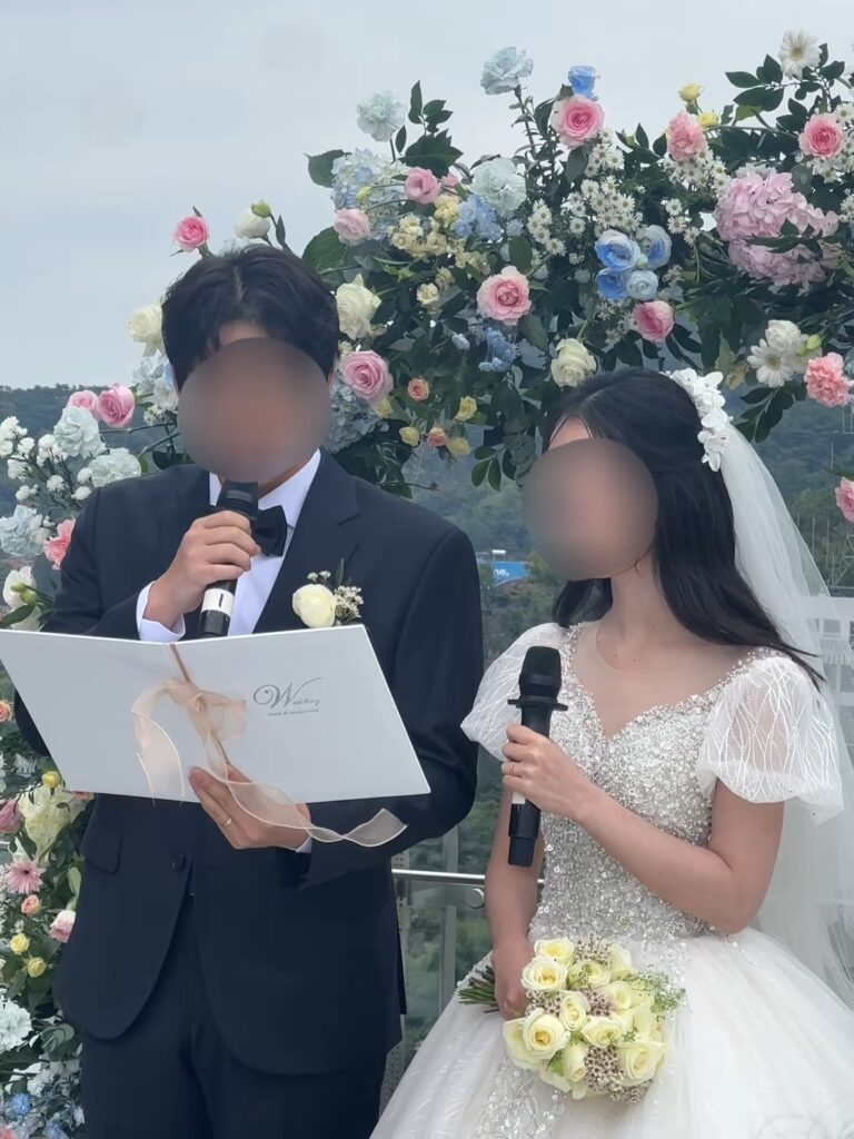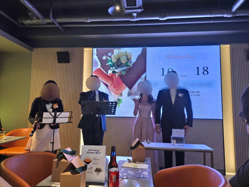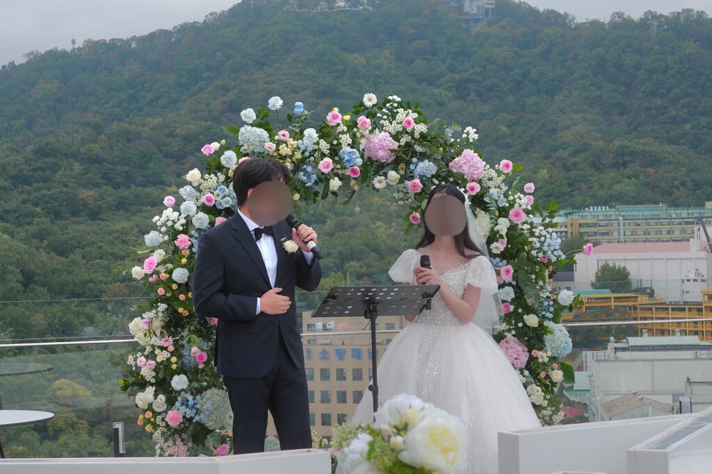 新郎と新婦の2人で誓いの言葉を朗読しました。私たちの場合は、新郎は韓国語で、新婦は日本語で交互に読みました!